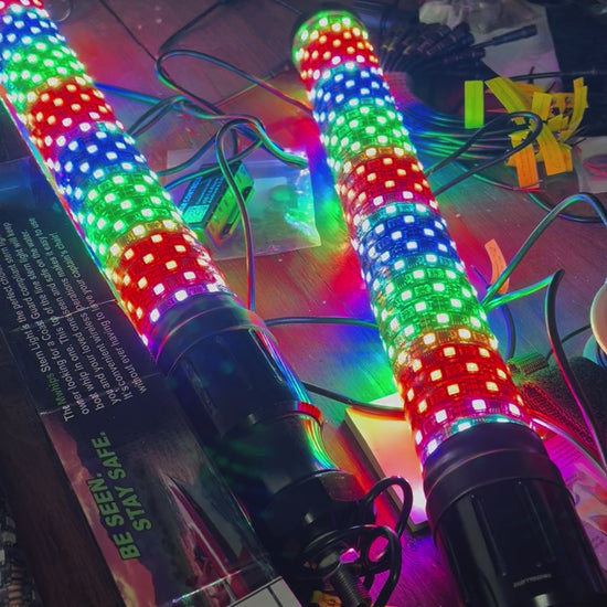 These 2ft T2 Donkey Whips have a strong 2in tube support and more LEDs than our 4‘ T2 Whips. Be bright, be seen, be safe!